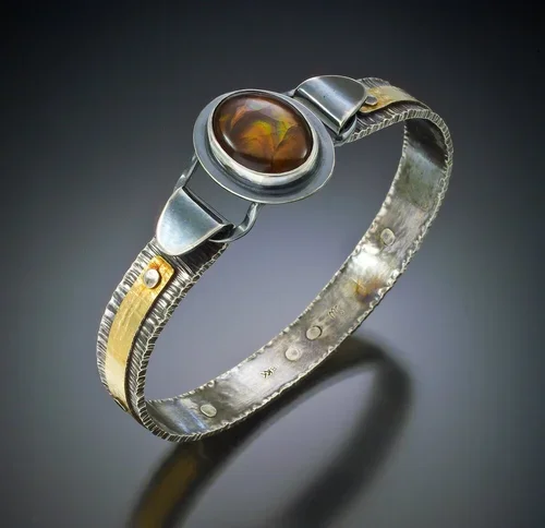While she values teaching and community, Mary Jo’s greatest joy comes from the creative process itself — watching a piece evolve from concept, to stone selection, to hand-textured metal as intuition leads the way. Her goal is simple and heartfelt: to create one-of-a-kind wearable art that her clients will cherish for generations.